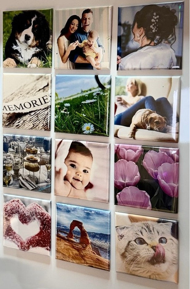 Gedruckt auf hochwertigem Fotopapier mit glänzender Oberfläche, besticht jeder Magnet durch leuchtende Farben und gestochen scharfe Details. Ob als Kühlschrankdeko, als persönliches Andenken oder als Werbegeschenk – diese quadratischen Magnete verleihen jedem Anlass eine persönliche Note.